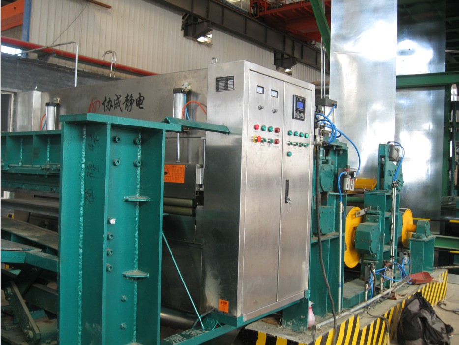 工作原理: 高壓靜電涂油是利用高壓靜電吸咐原理,將經(jīng)過雙流體精密霧化的靜電防銹油超微油粒吸咐在高速運動的金屬冷軋板(帶)上,形成一層均勻且極薄的防銹油膜,起到金屬防銹的作用。 產(chǎn)品特性: 高壓靜電涂油可以有效地解決使用輥式涂油機,因棍面磨損的原因出現(xiàn)的涂油不均勻或漏涂現(xiàn)象,而造成金屬表面銹蝕和因涂油過量在高速沖床上使用打滑等問題。 靜電涂油機具有涂油均勻,節(jié)約用油(每平方米鋼板表面涂油量最薄可達0.3克 ), 高速沖床使用不打滑工作可靠不污染環(huán)境等優(yōu)點。 高壓靜電涂油具有涂覆均勻、經(jīng)濟、高效、無污染等特點,已在眾多的鋼鐵企業(yè)使用,經(jīng)濟效益顯著。 產(chǎn)品安裝位置: 平整線、拉矯線、剪切線、分條線、酸洗線 使用方法: 客戶按使用要求在中央控制器上自由設(shè)定,設(shè)備自動運行 技術(shù)指標: 1) 工件名稱 鍍鋅帶靜電涂油機 2) 寬 度 300—1400mm 厚 度 0.3mm左右 3) 涂油形式 雙面靜電涂油 4) 涂油量 0.1克/平方米(單面) 涂油量 隨帶速升高涂油量增加, 金屬冷軋板(帶)表面涂油量保持不變.