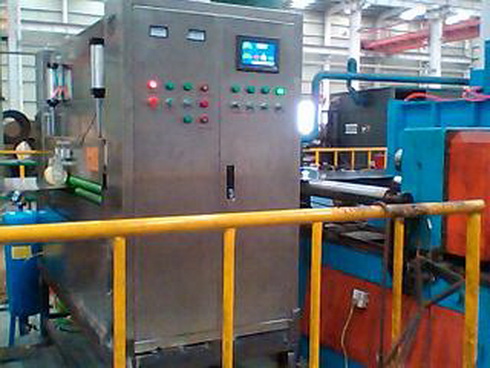 工作原理: 高壓靜電涂油是利用高壓靜電吸咐原理,將經(jīng)過雙流體精密霧化的靜電防銹油超微油粒吸咐在高速運動的金屬冷軋板(帶)上,形成一層均勻且極薄的防銹油膜,起到金屬防銹的作用。 產(chǎn)品特性: 高壓靜電涂油可以有效地解決使用輥式涂油機,因棍面磨損的原因出現(xiàn)的涂油不均勻或漏涂現(xiàn)象,而造成金屬表面銹蝕和因涂油過量在高速沖床上使用打滑等問題。 靜電涂油機具有涂油均勻,節(jié)約用油(每平方米鋼板表面涂油量最薄可達0.3克 ), 高速沖床使用不打滑工作可靠不污染環(huán)境等優(yōu)點。 高壓靜電涂油具有涂覆均勻、經(jīng)濟、高效、無污染等特點,已在眾多的鋼鐵企業(yè)使用,經(jīng)濟效益顯著。 產(chǎn)品安裝位置: 平整線、拉矯線、剪切線、分條線、酸洗線 使用方法: 客戶按使用要求在中央控制器上自由設(shè)定,設(shè)備自動運行 技術(shù)指標 1) 工件名稱 金屬冷軋帶鋼 2) 寬 度 300—1400mm 厚 度 小于2mm 3) 涂油形式 雙面靜電涂油 4) 涂油量 0.3--5克/平方米(單面) 涂油量 隨帶速升高涂油量增加, 金屬冷軋板(帶)表面涂油量保持不變.